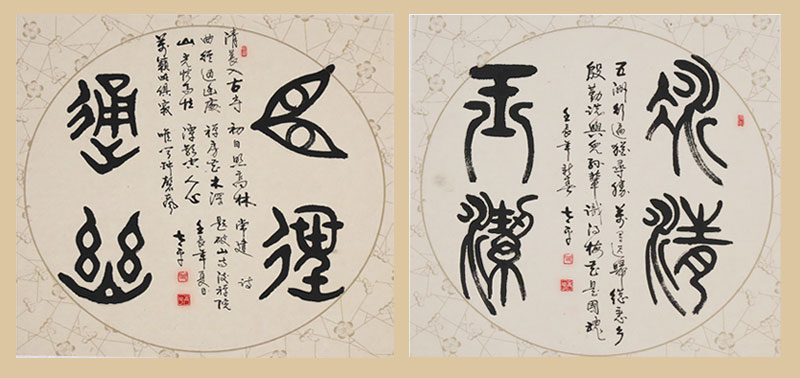 他的篆书金丝铁线,冷静内敛,结构优美颖长、线条精致有力,唯美中透着庄重。