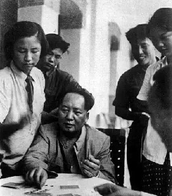 毛泽东与工作人员一起