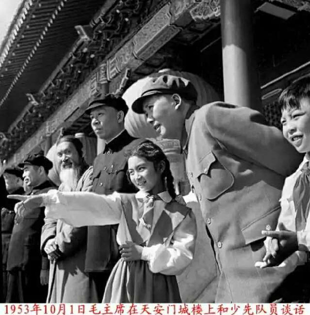 1953年5月30日,毛泽东与李敏、李讷、刘松林及身边工作人员在北京玉泉山。